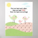 Det här är en söt och färglös poster att lägga sig i ditt barns rum. Den har rosa och grönt fåglar - far, mor och baby.