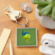 Fågelfärgen Cute grönt Fyrkantig Silverfärgad Nyckelring