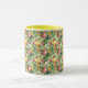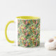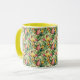 Tropiska fåglar var kaffe mugg med gult- och rosa fåglar, biskopsblommor och fjärilar.