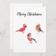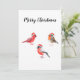 Fågelkort för hälsning i god jul. Röd kardinal bullfinch robin Julhatt isolerad illustration. Roligt och glädje dekoration. Anpassad design.