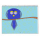 Färgmålning av alla typer av fåglar, inklusive uggla på ljusa färger, gör roligtens kreativ och unika kalender.