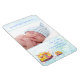 Cute-blomsköldpaddan mamma och baby + ljusblått blommönster i bakgrunden som illustreras på anpassningsbar Baby Photo Birth Anouncement Magnets. En bra perfekt för utformningen av baby djur för nyfödd bebis! All exempeltext och alla bilder kan anpassas helt med din egen formulering och bild. (Kontakta ujean4791@gmail.com för anpassningsbar och/eller matchande artiklar.)