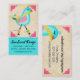 En söt fågel med mätband, sax och spolar av tråd på den här farkosten visar affärskort för sömmerprodukter eller syprodukter.