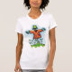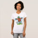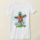 Var inte skrämt, det är bara en fågelskrämma. De är designade för att skrämma bort fåglarna. Den här fågelskrämman har en orange överst och verkar ha en hink på huvudet. Armen är utdragen och står i grönt. Den här fågelskrämman ser underbar ut på den här kvinnans t-shirt. Perfekt för dig själv eller som gåva