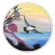 Ursprunglig målning av en fågel som ligger nära ett berg i luft. Skapas med akrylfärg.