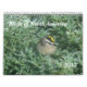 Tolv olika fåglar som fotograferas i naturliga inställningar. Alla fåglar som märks på den tillbaka sidan av kalendern.