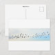 En flock med fåglar flyger över vykortet. Ett fotografi av dvärgmövor taget i Tokyo.