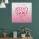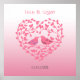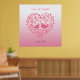 Udda rosa fåglar i kärlek i en hjärtformad andedräkt av löv på rosa och vit gradientbakgrund