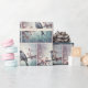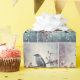 Bird sitta på gren med regndroppar på fönsterrutan med rosa gräns.