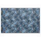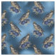 Vackra grått-, blåa- och bruna fåglar med guld krona sitter på blåa blommor och lämnar på en metallblå bakgrund.