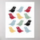 Detta fantastiska medelårhundrade moderna poster med ljusa fåglar i färg, rött, blått, grönt, gult och svart. Det här blir ett färgstarkt tillägg till din hemdekoration!