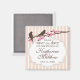 © 2011 Socialite Design. Vår elegant spara-till-datamagnet i bröllop har ett par fåglar på en blommar gren silhuetterad mot en färgad med silverkant som är utriven mot en silverkant. Ditt textområde kommer att gränsas till både silver och silver molnet färg. Texten färg är för närvarande densamma som fåglarna. Kräver du HELP med anpassning? Tveka inte att kontakta mig om dina krav.