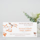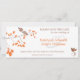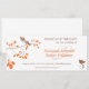 Den här eleganten och romantiken sparar datuminbjudan med två bruna fåglar, en sitta i träd gren med orange löv och den andra fågeln på flykt som närmar sig. Ordalydelsen "Spara datum för bröllop av" är i brunt text tillsammans med datum och plats för bröllop. Bröden och brudgummens namn är i orange för att matcha löven på träd gren. En liten anteckning stater om att en formell bröllopsinbjudan kommer.