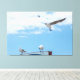 Funky Flies Sitta Fiskmås Birds Blå himmel Kanvastryck för att lägga till i ditt hem/kontor/din företagsdekorsamling. En coola-gåva/presentidé för alla som kärlek industriellt känner, anpassad design-artiklar.