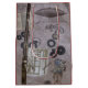 På denna dekorativa gåva hänga lös, ett overkligt scenario i steampunkstilsärdrag fagotten som höjdpunkten som gås med av talrika osannolika inslag liksom en dirigible, förser med kuggar och utrustar, och en portugisisk bok för vintage.