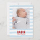 Célébrez l’arrivée de votre petit trésor avec le faire-part "Gabin", un modèle au design à la fois moderne et délicat. Ses rayures élégantes bleu et son texte rouge apportent une touche graphique douce et pleine de fraîcheur, idéale pour annoncer une naissance avec style et tendresse.