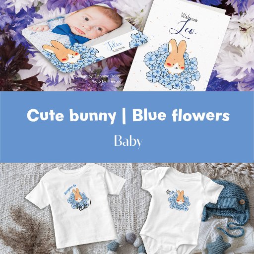 Lapin mignon et fleur bleueDesignad av Tiphaine Boilet