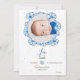 Faire-part naissance lapin mignon en illustration avec fleurs à l'avant pour informer votre famille et vos amis de l'arrivée de bébé! De l'autre côté, il suffit de remplacer l'exemple d'image par votre photo préférée de votre nouveau-né et de personnaliser le texte des deux faces avec vos propres détails.
