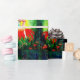 Whimiscal, colorful och vibrant akrylmålning på målarduk i ljust rött, grönt, gult, blått färg av Bulgan Lumini (c).