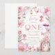 Den här fantastiska födelsemeddelandet är perfekt för en liten prinsessas första födelsedagsfest. Den har rosa fjärilar, två vackra älvor och rosa blommor, svampar med vattenfärg stil. Perfekt för en födelsedagsfest för en flicka.