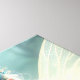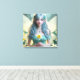 En vacker blå hårig med blek gult vingar med söt med färgad av akvarium och ett akvamarinhaltigt halsband har en enda daffodil medan man står i en fält av daffodils.