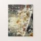 Fairy Tea Party Jigsaw Puzzle – Enchanted Kitchen with Sweet Treats & Springtime Magic. Step into a whimsical world of charm and delight with our Fairy Tea Party Jigsaw Puzzle. This enchanting scene showcases three golden-haired fairies with delicate white wings preparing a magical feast in a cozy, sunlit kitchen. The table is set with lace linens and overflowing with sweet delights—cakes, pies, tarts, honey tea, and sugared berries—creating the ultimate fairy tea party spread.