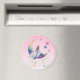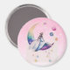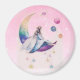vacker älv sitta på ett crescerande måne med lätt galaxisk rosa bakgrund
