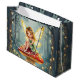 Cottage core fairy tale Christmas gift bag. A sweet little winter fairy sitting on a whimsical red mushroom in an enchanted forest.