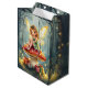 Cottage core fairy tale Christmas gift bag. A sweet little winter fairy sitting on a whimsical red mushroom in an enchanted forest.