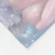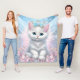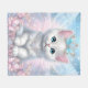 En berömvärd prinsessa vit kattunge med juveler, rosa blommor och vingar på glatt blå bakgrund.