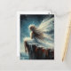 En söt älv i en vit klänning sitter på en klippa som förbiser havets fantasi.