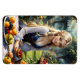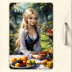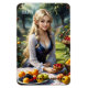 Flexibel magnet med en vacker älv i en förtrollad trädgård med många frukter. Bra för Thanksgiving eller tillfälle.