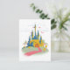 Fairysvansslott på en grönt backe, söt tecknad i en vacker gammal vintage stil.