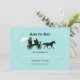 Fairytale bröllop spara datum-kort med en brid- och trimridå i en hästdragen transport. Ornera ram på en robins äggblå bakgrund. Perfekt till din storybook prinsessan bröllop! Finns även i andra färg. Kontakta pmcustomweddings@hotmail.com för anpassningsbar färg. Matchar vår häst och vagnspark i bröllop.