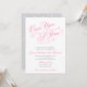 Fairytale "Gång On A Time"-bröllopsinbjudningar i rosa och grått, med vackra typografiska blomningar. Skripttexten lyder "Gång On A Time" i rosa, med en stjärndesign på baksidan.