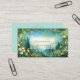 Define your brand with opulent growth and the magical elegance of a hidden kingdom using this captivating business card. The design transports you to a spectacular vibrant green forest valley, where dense, abundant foliage surrounds a winding river. In the center, majestic fantasy castles or palaces sit nestled among the hills, bathed in the ethereal light of a glowing crescent moon and subtle stardust in the twilight sky. The entire scene is lavishly framed by an abundant border of creamy white and pale yellow roses and wildflowers, creating a lush, romantic archway. This artwork blends rich, magical realism with serene natural beauty, conveying a sense of wonder, prosperity, and high-end elegance that makes your card truly unforgettable. This business card is ideally suited for a luxury event planner specializing in fairytale or garden-themed celebrations, a boutique hotelier wanting to convey a magnificent, picturesque setting, or a fantasy novelist or editor seeking distinctive, narrative-driven branding. It would also perfectly suit a fine art print seller focused on mystical landscapes, or an exclusive floral designer emphasizing luminous, garden-style arrangements. The card's captivating combination of enchanted scenery and abundant white florals ensures it is versatile for any sophisticated announcement, a refined gift enclosure, or an elegant invitation.