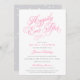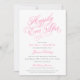 Fairytale inbjudningskort för möhippa i rosa och grått, med vackra typografiska blomningsfärger. Skripttexten lyder "Lyckligtvis alltid efter" vid rosa, med en stjärndesign på baksidan.