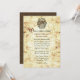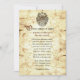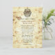 Åldrasen tittar en bröllopsinbjudan om sagor som papper, med blommor nedåt på den lämnat sidan och högerna. Bilder av en vapensköld med unicorns dekorerar inbjudningens överkant. Baksidan av inbjudan görs i ett brunt dammmönster. Anpassa texten fält till kostym efter dina behov. Matchande OSA kort är tillgängligt.