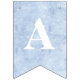 Den här födelsedagsbuntningen har en snöbakgrund bakom brev som stavar "Grattis på födelsedagen". På varje ände är en Fairytales prinsessa som bär en blå gåva.