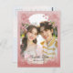 Hämta magin i din kärlek-artikel med den här nyheten Spara datumfotovykortet. Den ömtåliga rosa blommigten ram på framsidan sätter romantik, medan baksidan har en subtilt blek bild av ett prinsessans saggslott och tillför lite magi till ert tillkännagivande i bröllop. Anpassa med foto och information för en unik tidslängd.