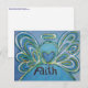 ord för "Faith" är målat i skuggor av mjuka blues med gult- och grönt accents. Akrylmålningen har en texturkontrast och gnistra från ett ljus lagrar i glitter. Den inspirerande ord-målningsserien är hämtad från den text som används i ängelmålningarna. "Jag väljer att välkomna tron." -Mitt liv, mitt val "I mitt liv väljer jag att behålla min tro" -Känn skönhet "Det kan inte korsa tron" -det som cancer inte kan göra denna ängel ord bilder är designat för att ge eftertanke och meditation på ett ideal. Det är designat med tanken på ängel ord för att hjälpa dig att känna den positiva attityd som är förknippad med ord och för att hjälpa dig att läka känslomässigt. Du kan också kombinera ängel ord tillsammans för att skapa din egen ord-serie för meditation/ övervägande. Anpassa kortet och gör det personligt med din egen text.