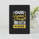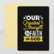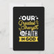 Show the world where your strength comes from with this bold Christian quote design: “Our Greatest Strength is Faith in God.” Featuring vibrant yellow and white typography on a black background, this faith-filled design is perfect for believers who want to express their trust in God with confidence and style. Ideal for Christian apparel, mugs, wall art, and stickers—great for youth groups, church events, or personal inspiration.
