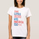 Denna svävande t-shirt-design har ett djärvt, patriotiskt budskap som kombinerar tro och nationellt pride. I texten står det: "HON KÄRLEK JESUS OCH AMERIKA OCKSÅ", där man betonar hängivenhet för både religiösa tro och nationen. Det alternerande röda och blå färg framkallar den amerikanska flagga, medan den plågade typografin tillför en tålig, hjärtlös beröring. Perfekt för att ha uttryckt kärlek för Jesus och Amerika med stil och övertygelse.