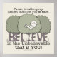 Lille Boy ses i en avslappnad attityd högt i träd, vilket illustrerar citatet ovan som påminner oss om att stanna upp, andas, be och låt tro lugna er. Formerna för dessa träd flockar visar ord, "BELIEVE" och citatet "i det otroliga ni!" nedan, som kompletterar David A. Carrizales välkända ordspråk. Teckning är av Christie Black.