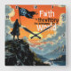Denna kraftfulla väggklocka har ett resolut figur som står segrande på en klippande klippa och som håller en tatuerad flagga mot ett svepande landskap av berg och vatten under en dramatisk solnedgång i himmel. Den djupa förklaringen "Faith är den seger som överträffar världen" visas tydligt. Med sin texturerade, uttryckliga konst och tydliga siffror fungerar denna tidspunkt som en ständig inspirerande påminnelse om trosbekännelsens erövrande makt och andlig triumf över livets utmaningar.