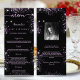 Menykort för födelsedagsfest. Anpassa och lägg till namn, ålder, datum och meny. En chic svart bakgrund, dekorerad med damm från lila Faux glitter. Lila färgad brev. Tillbaka: Lägg till ett foto av födelsedagsflickan, fakta om roligten och namn.