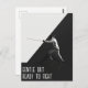 Detta svart-vita dominanta vykort har en fäktande proffs illustration när han/hon anfaller sin motståndare. Designen åtföljs av den anpassningsbara standardtexten "mild men redo att kämpa".