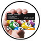 Den här miljardtematmallen för visitkort har en färgstark grafisk slutavbildning av miljardtals bollar och text som du kan anpassa online för din bassäng-kamrat, biljardhall eller sportsalen pub.