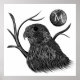 Svart och vit teckning av en peregrine falcon med fullt och träd grenar. Använda textmallen om du vill lägga till ett första eller ett monogram i måne. ♡ Idyllfire