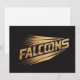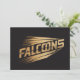 A bold golden “Falcons” typography design featuring dynamic speed streaks that create a sense of motion and power. The metallic-style lettering and sharp graphic accents give this artwork a strong athletic and competitive vibe. With its clean composition and energetic visual style, this design is perfect for falcon fans, sports spirit, and anyone who loves powerful team-inspired graphics with a sleek modern edge.